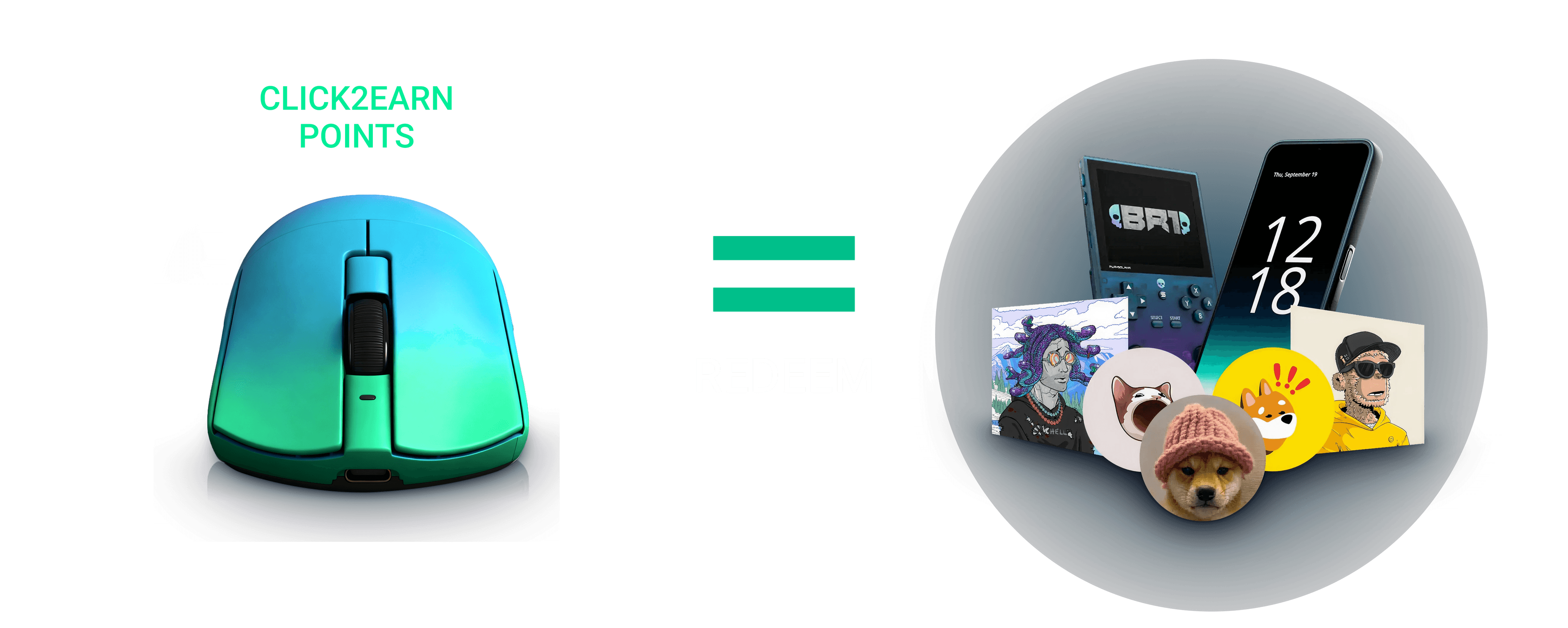Click2earn points can be used to redeem assets that are predominently from the Solana Ecosystem (virtual or physical)